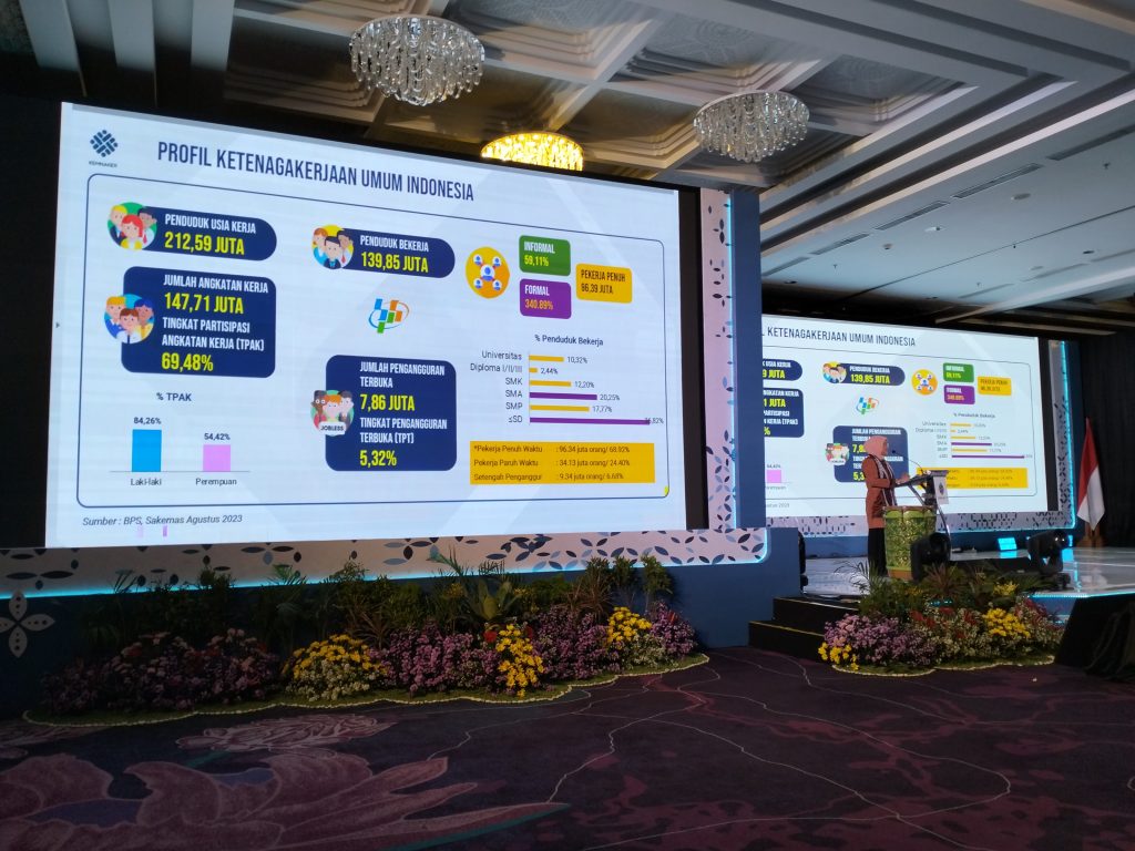 Pembukaan Business Matching batch 2 di Yogyakarta oleh Menteri Tenaga Kerja RI, Ibu Hj. Dr. Ida Fauziyah M.Si dan didampingi oleh Dirjen dan Staf khusus Kementerian tenaga kerja RI dan Staf khusus Gubernur Daerah Istimewa Yogyakarta.