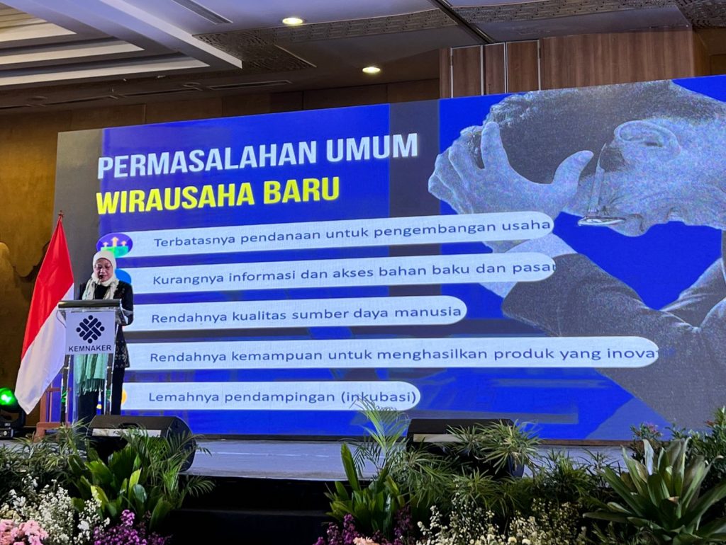 Menaker RI, Ibu Dr. Hj. Ida Fauziyah, M.Si., membuka acara Bisnis Matching 2022, sekaligus menyampaikan pemaparan situasi kewirausahaan di Indonesia