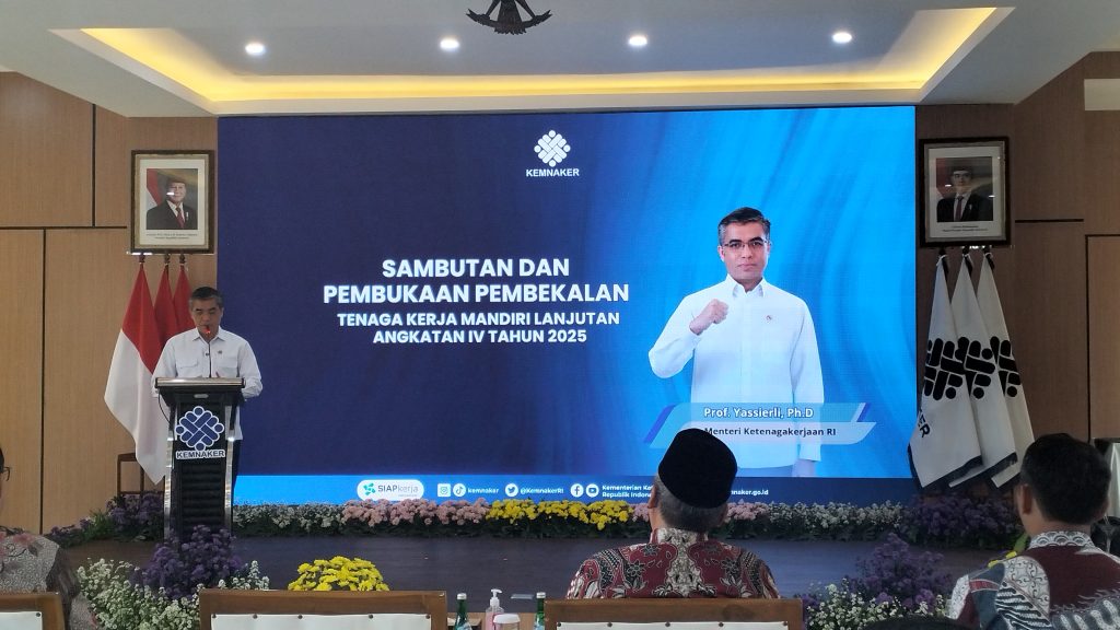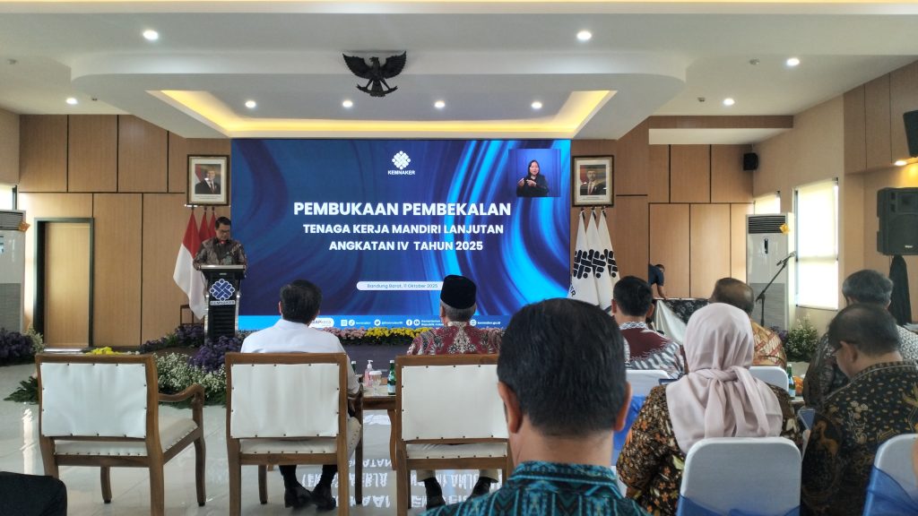 Kementerian Ketenagakerjaan RI (Kemnaker) secara resmi membuka kegiatan Pembekalan Tenaga Kerja Mandiri Lanjutan pagi ini (11/10) di Balai Besar Perluasan Kesempatan Kerja, Bandung Barat. Acara pembukaan ini dihadiri langsung oleh Menteri Ketenagakerjaan RI, Prof. Yassierli, Ph.D., dan dihadiri oleh jajaran pemerintah daerah setempat.