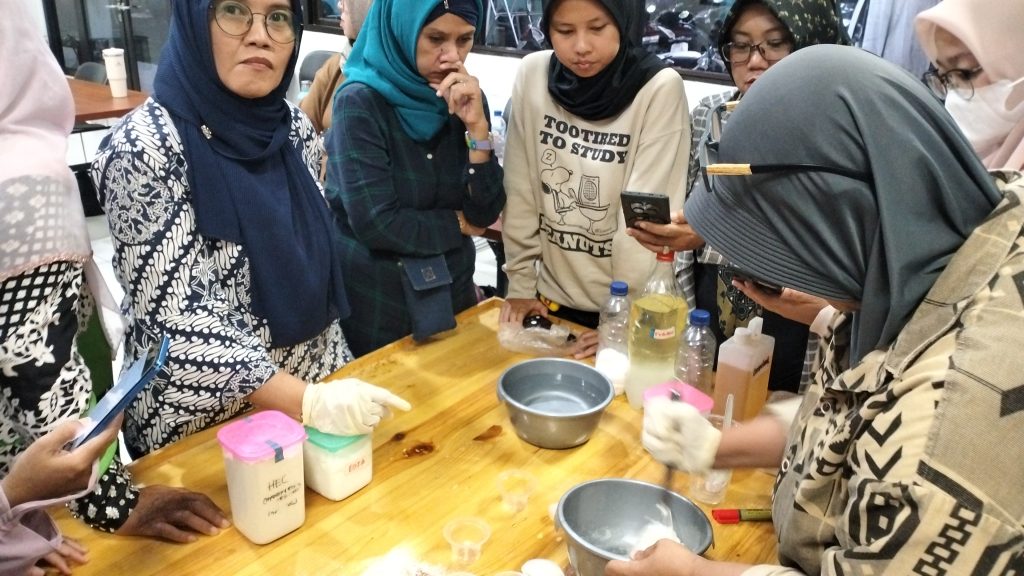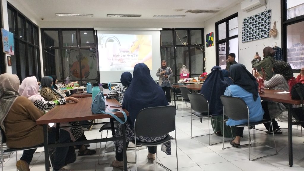 Pelatihan Membuat Sabun Cuci Piring Cair di Tempat Kumpul Kreatif (TKK) Centex, Jakarta Timur. Kegiatan diikuti puluhan peserta dari Jakpreneur dan UMKM di Jakarta.