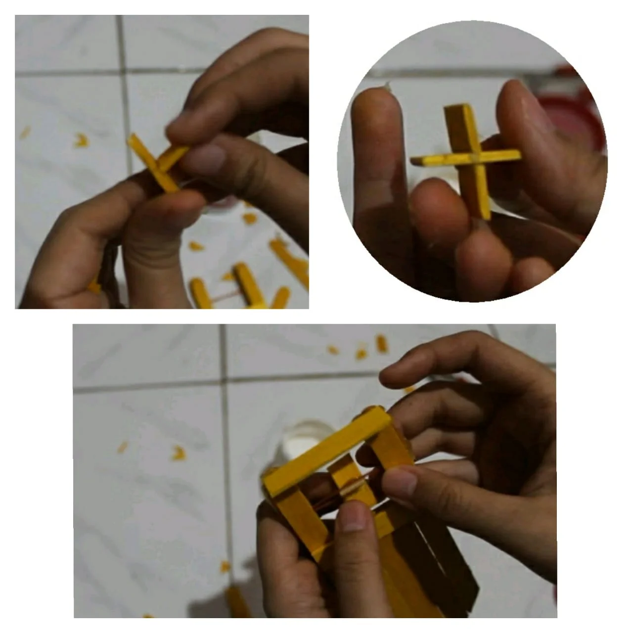 - Kemudian rakitan stik es krim seperti bentuk baling-baling dengan lem tembak agar tidak lepas.