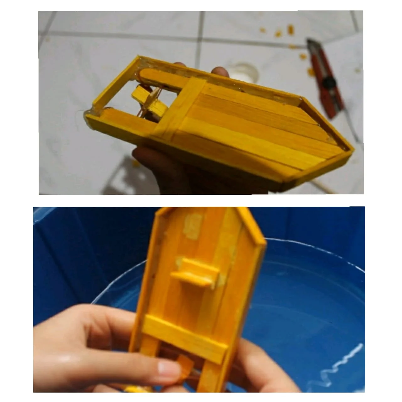- Stik es krim yang telah dibuat dan kemudian diselipkan pada propeller bagian belakang.