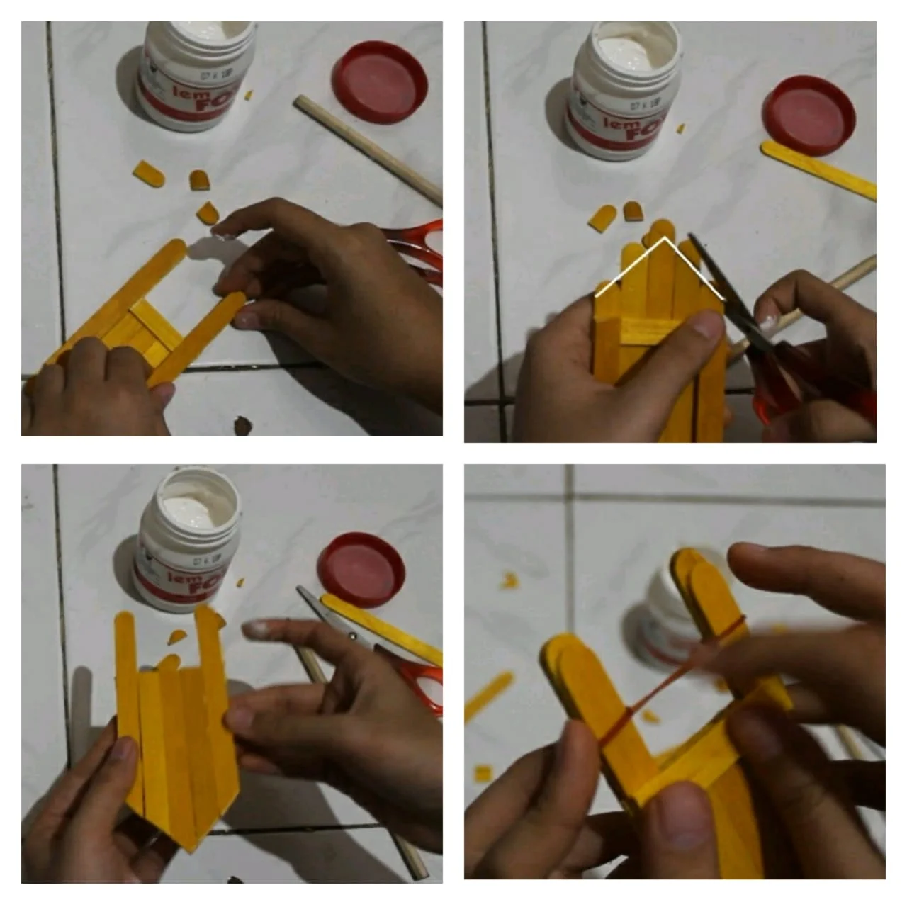- Sisa stik es krim di bagian belakang dan potong stik es krim lalu tempelin dengan lem.